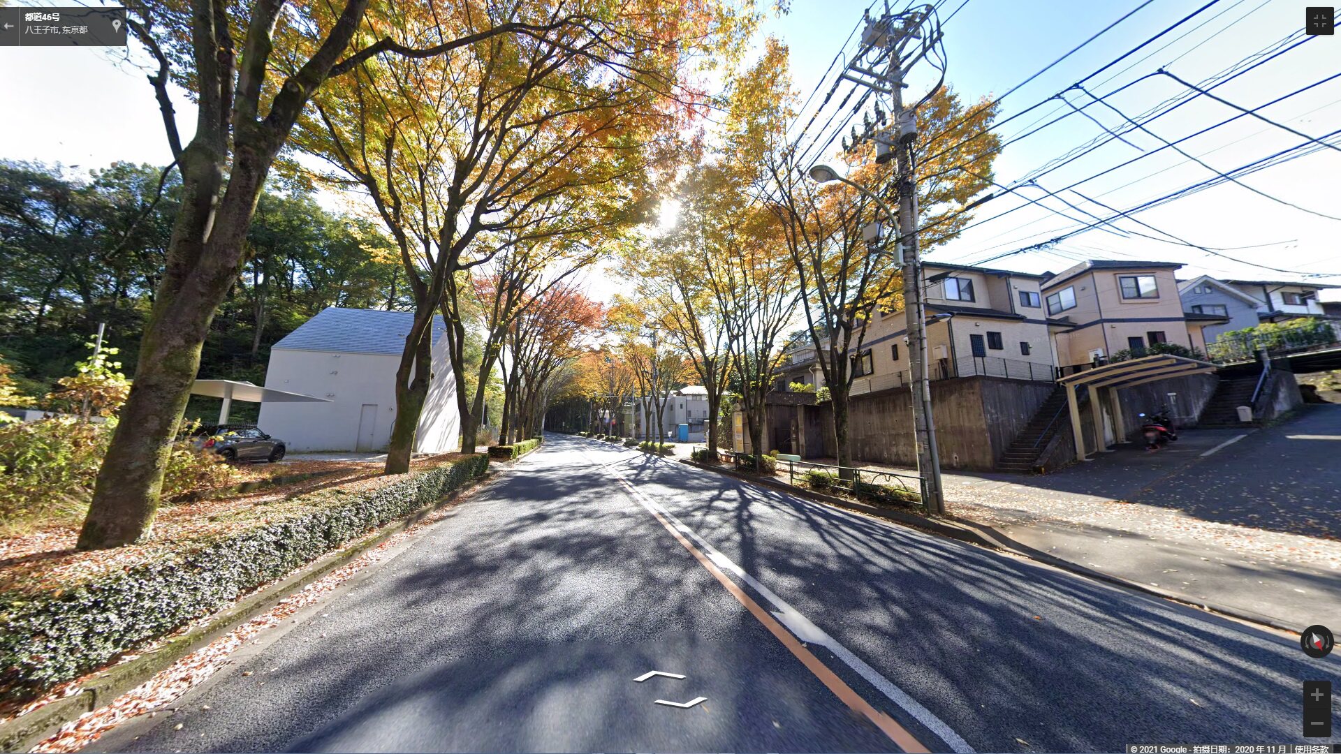 然后您点击地图上前后左右标记,就可以体验自由旅游了!(街景左上角箭头,是返回地图按钮,街景左下角有小地图按钮,点击可开启,查看当前街景时所在地图位置)